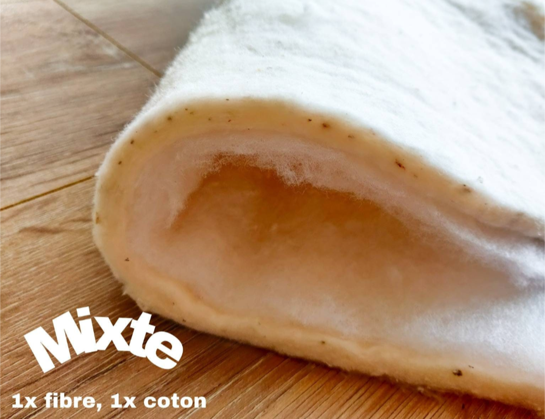 - Rembourrage : L'épaisseur et la densité sont conformes aux recommandations de Maria Montessori (environ 1 cm et 330 gr pour la version simple couche de coton).
